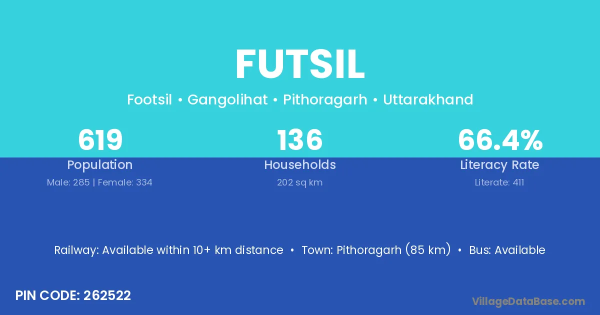 Pithoragarh (85 km) is the nearest town to Futsil village for major economic activities and is located approximately 85 km away.