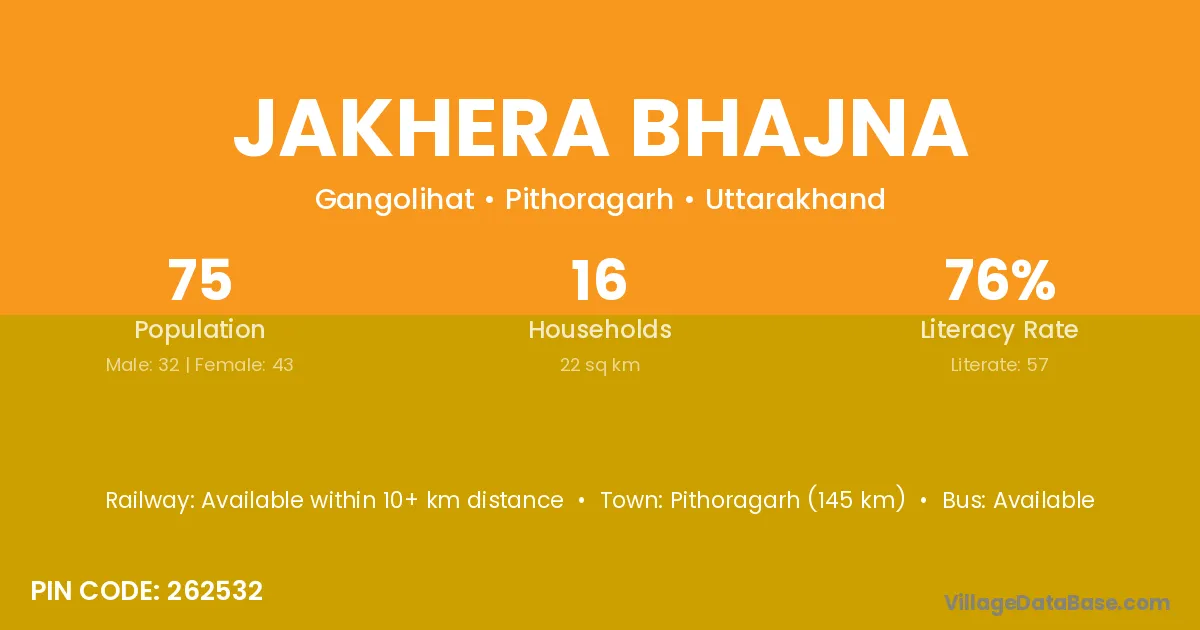 Pithoragarh (145 km) is the nearest town to Jakhera Bhajna village for major economic activities and is located approximately 145 km away.