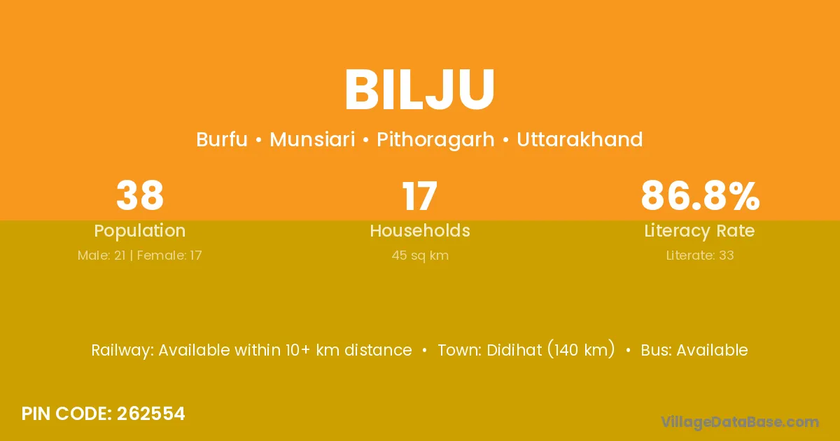 Bilju village has a total population of 38 people, of which 21 are males and 17 are females.