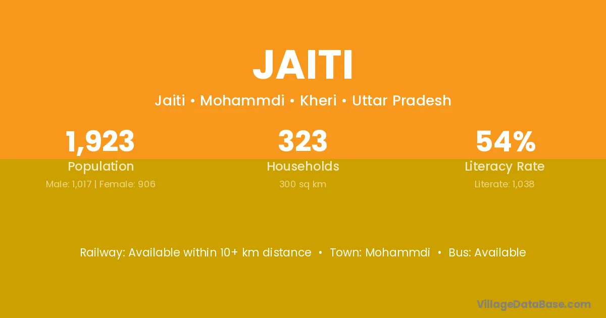 Jaiti village has a total population of 579 people, of which 278 are males and 301 are females.