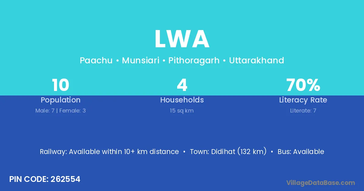 Lwa village is located in the Munsiari Tehsil of the Pithoragarh district in Uttarakhand .