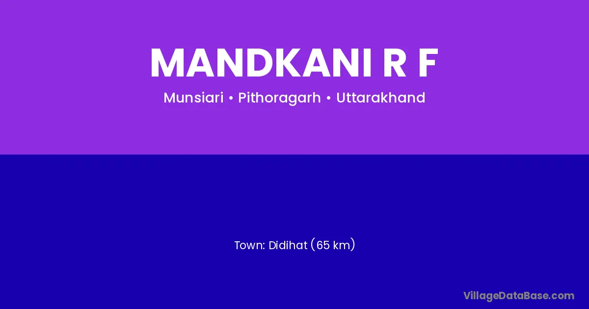 Didihat (65 km) is the nearest town to Mandkani R F village for major economic activities and is located approximately 65 km away.