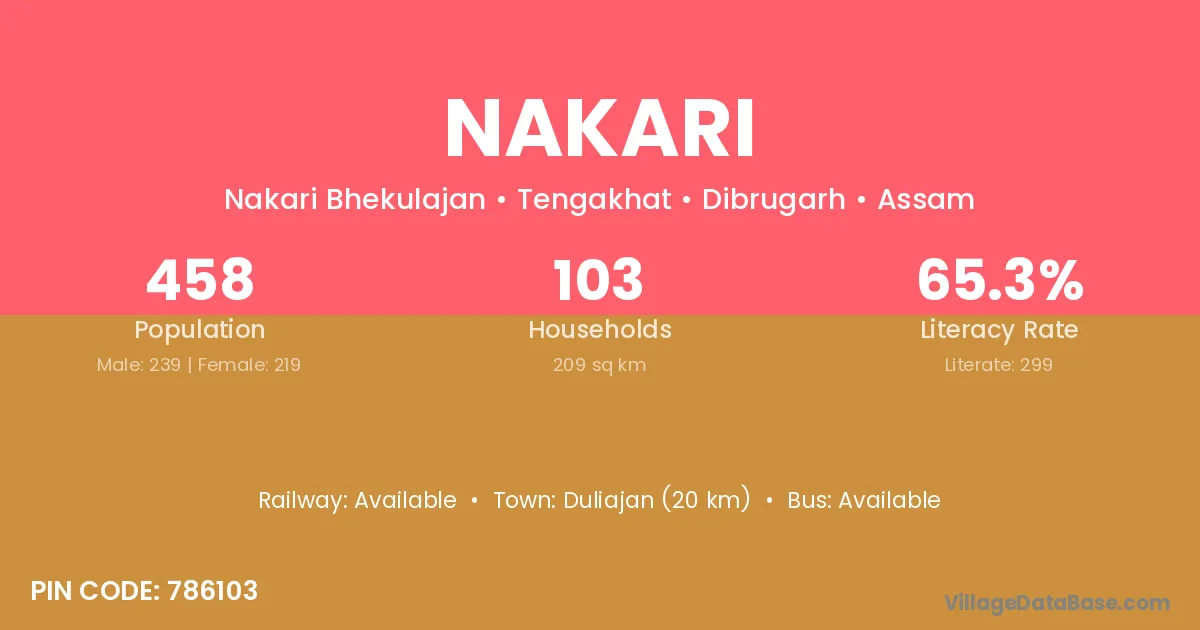 Didihat (52 km) is the nearest town to Nakari village for major economic activities and is located approximately 52 km away.