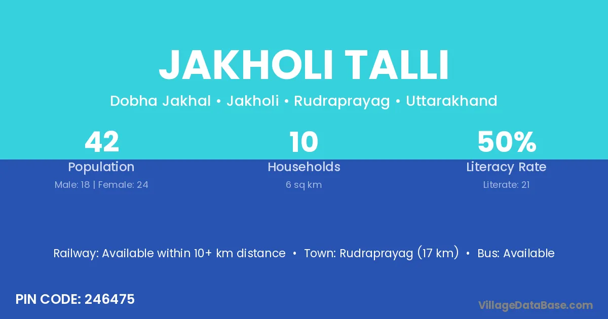 Rudraprayag (17 km) is the nearest town to Jakholi Talli village for major economic activities and is located approximately 17 km away.