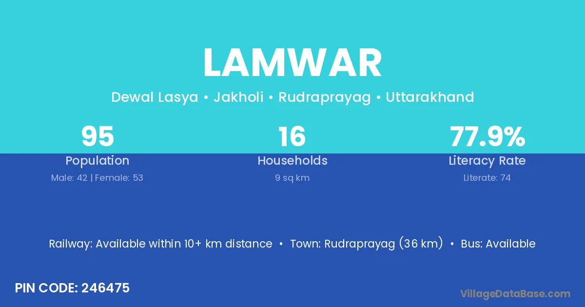 Rudraprayag (36 km) is the nearest town to Lamwar village for major economic activities and is located approximately 36 km away.