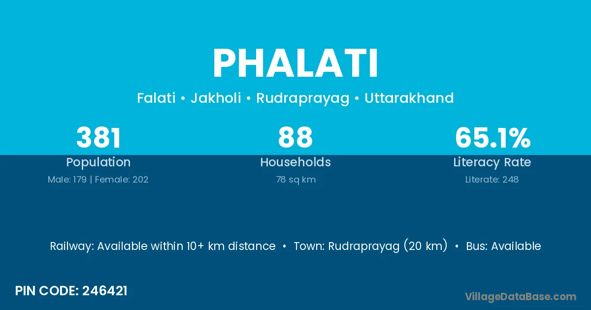 Rudraprayag (20 km) is the nearest town to Phalati village for major economic activities and is located approximately 20 km away.