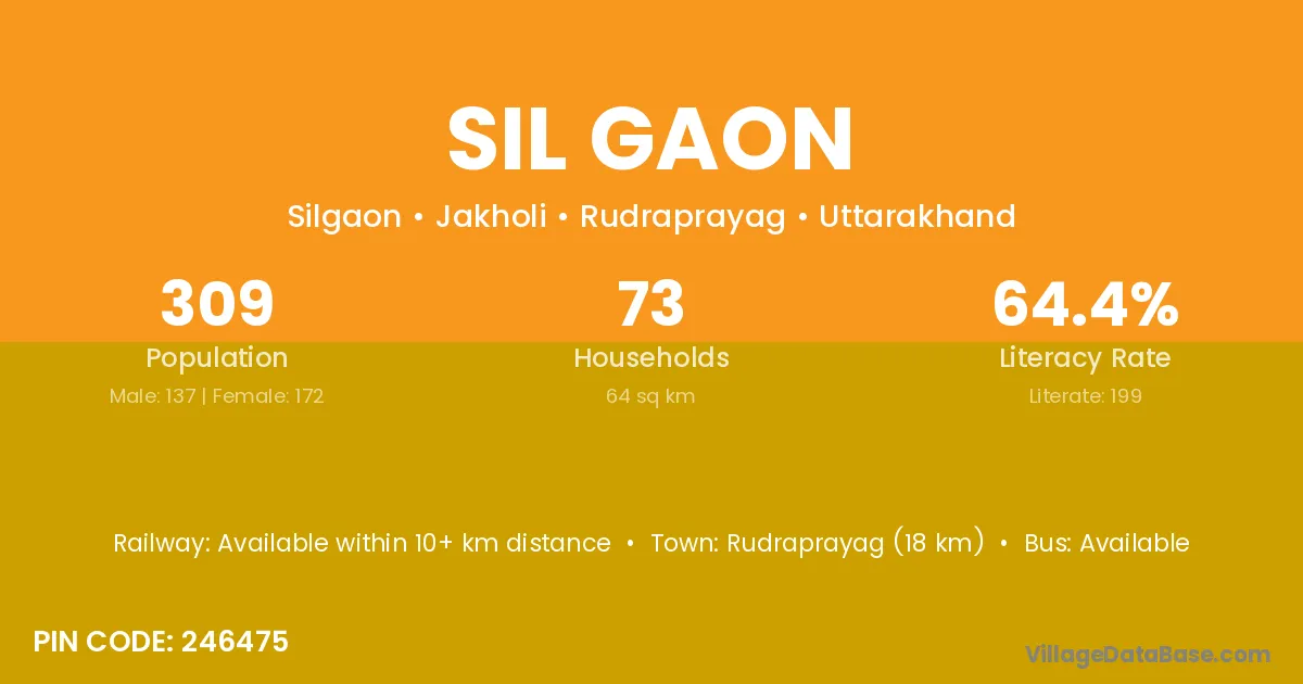Rudraprayag (18 km) is the nearest town to Sil Gaon village for major economic activities and is located approximately 18 km away.