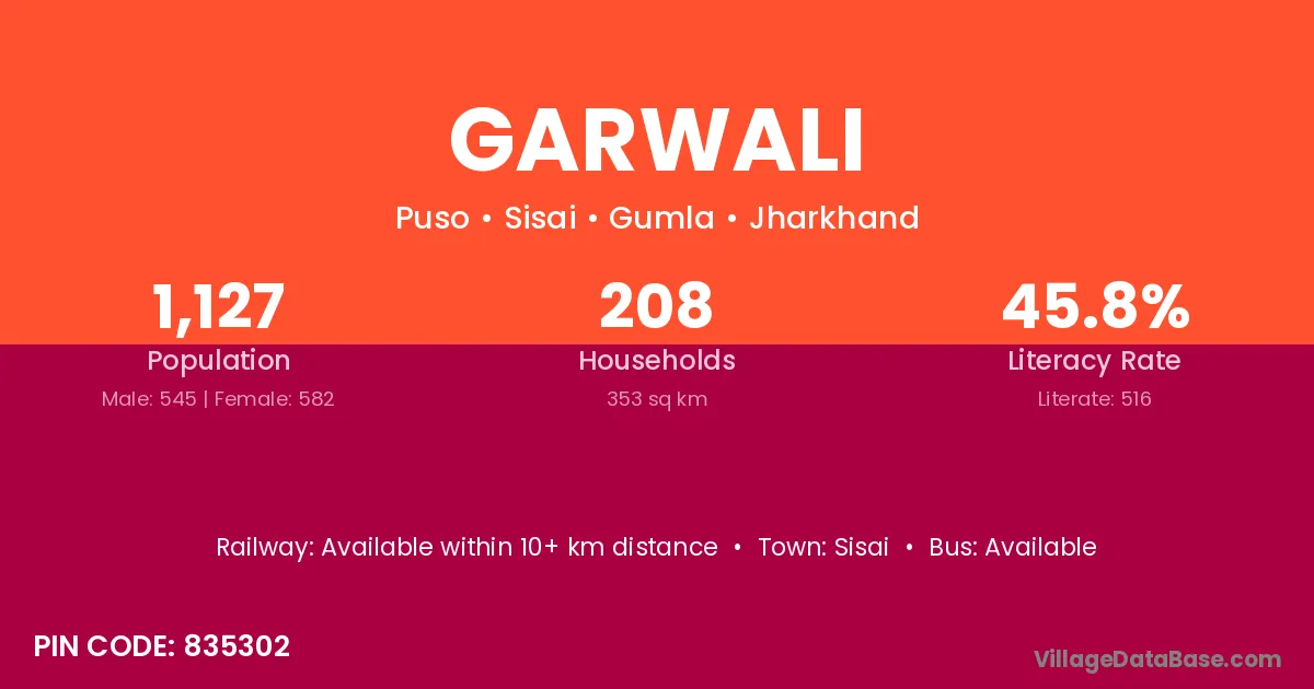 The literacy rate of Garwali village is 75.89%. Male literacy stands at 92.59% and female literacy at 60.34%.
