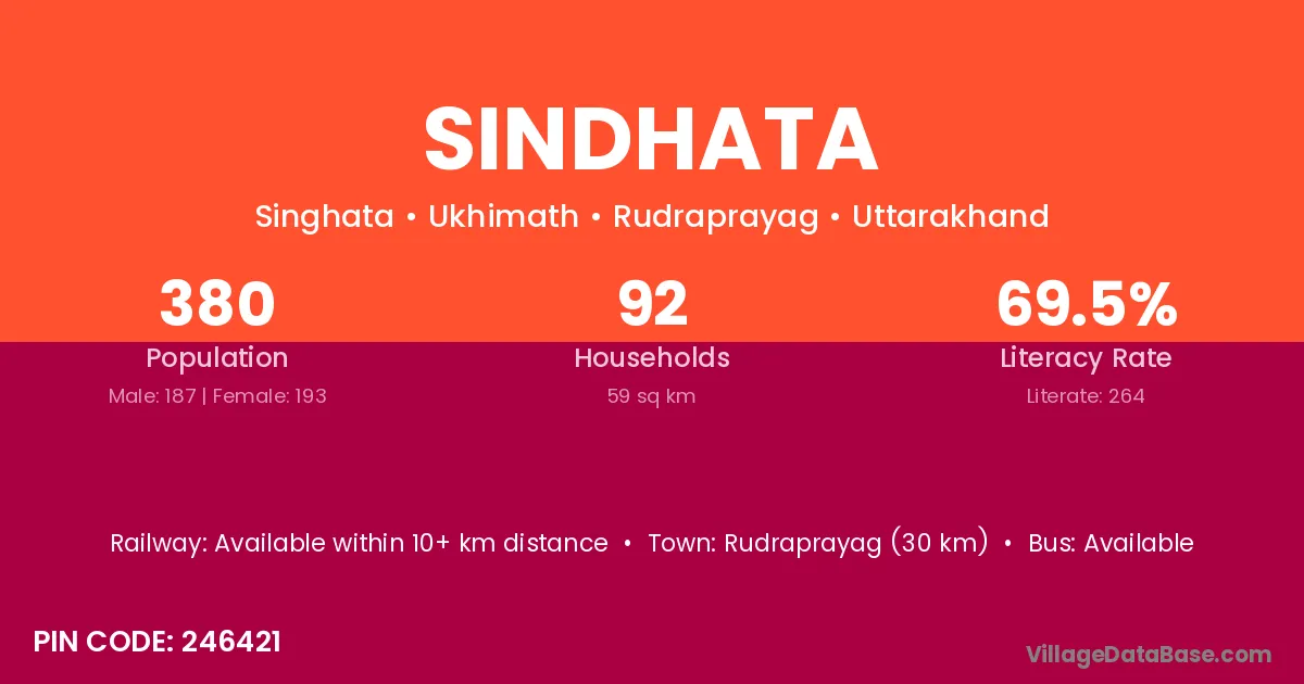 Rudraprayag (30 km) is the nearest town to Sindhata village for major economic activities and is located approximately 30 km away.