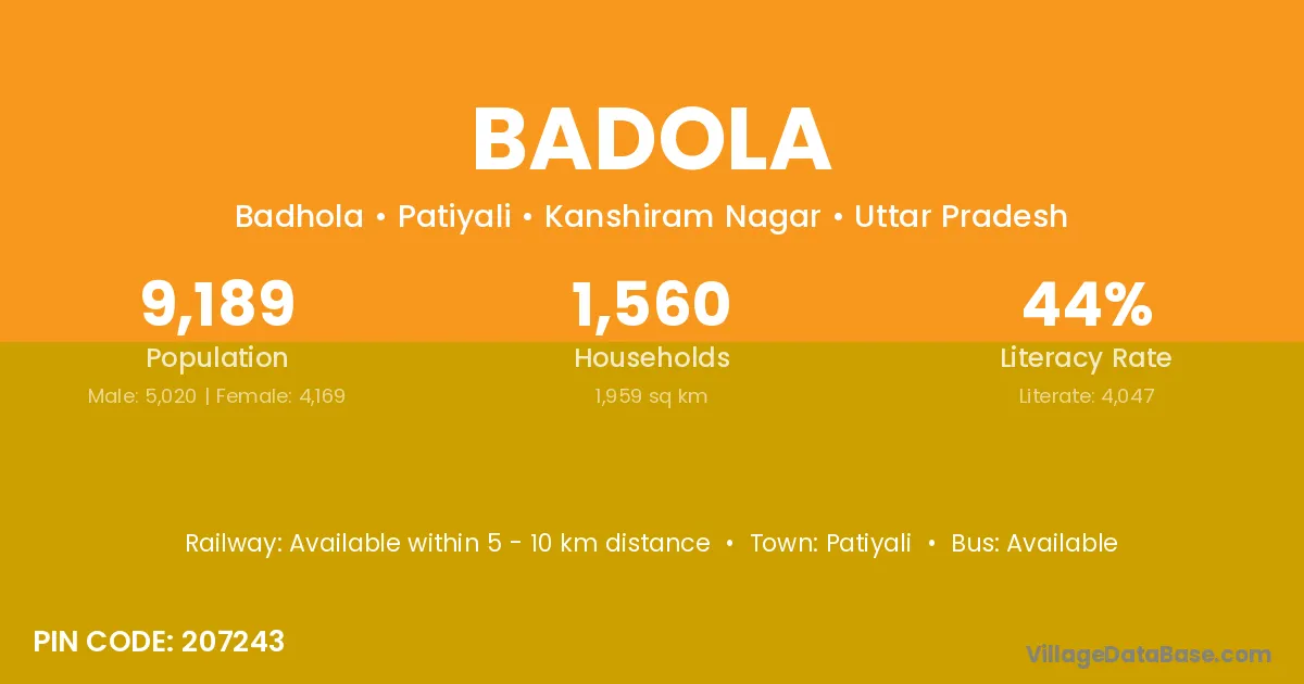 Kirtinagar (12 km) is the nearest town to Badola village for major economic activities and is located approximately 12 km away.