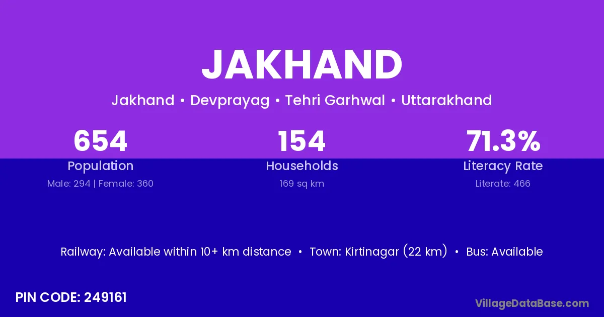 Kirtinagar (22 km) is the nearest town to Jakhand village for major economic activities and is located approximately 22 km away.
