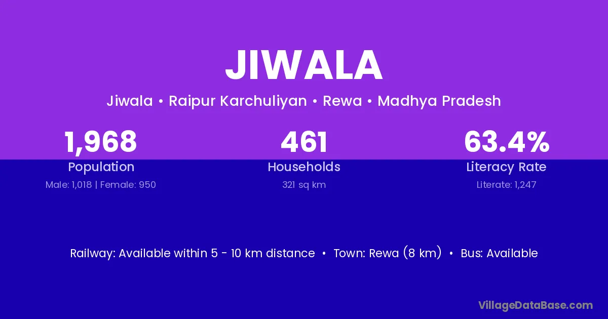 Kirtinagar (13 km) is the nearest town to Jiwala village for major economic activities and is located approximately 13 km away.