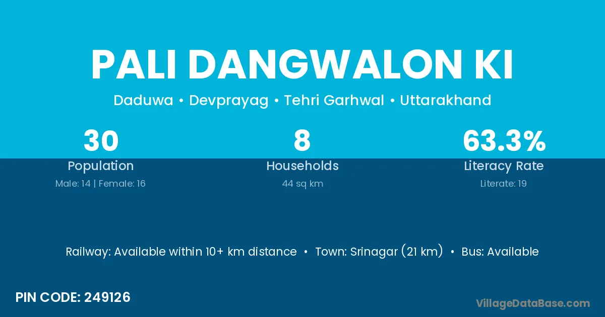 Srinagar (21 km) is the nearest town to Pali Dangwalon Ki village for major economic activities and is located approximately 21 km away.