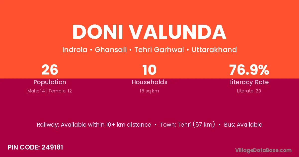Doni Valunda village is located in the Ghansali Tehsil of the Tehri Garhwal district in Uttarakhand .