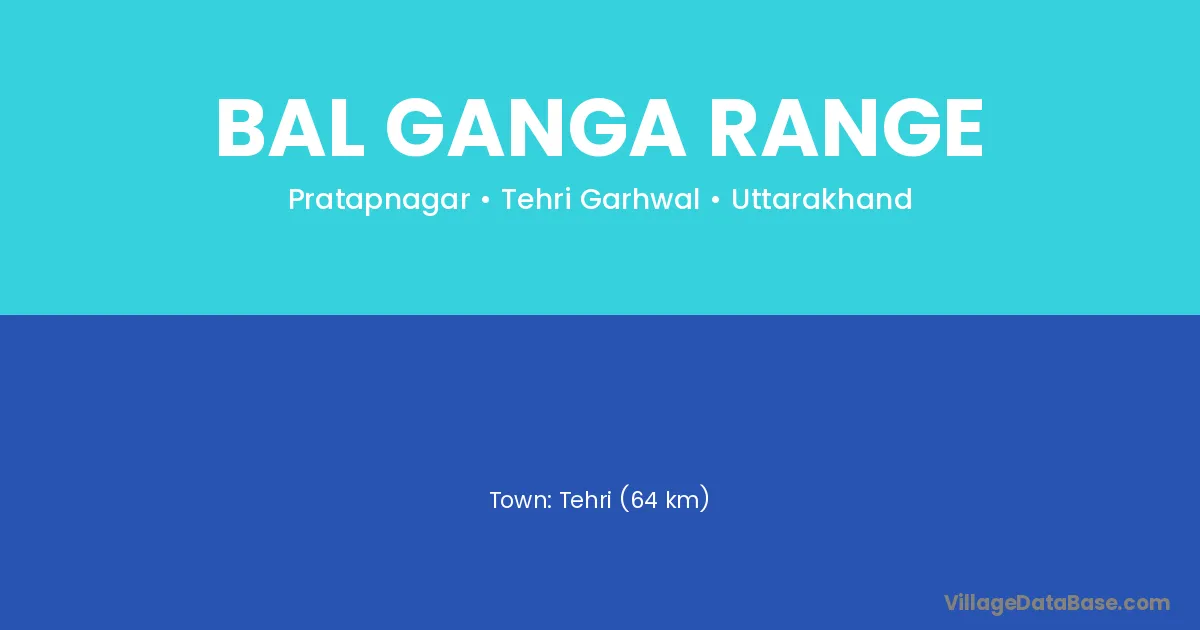 Tehri (64 km) is the nearest town to Bal Ganga Range village for major economic activities and is located approximately 64 km away.