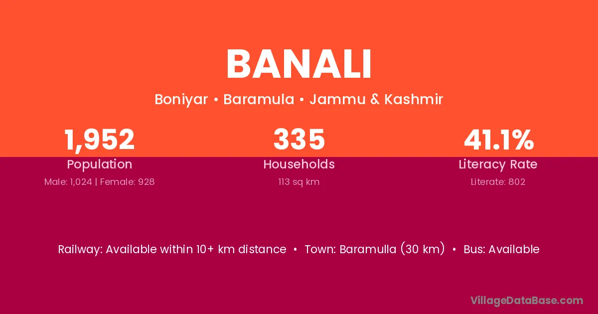 The literacy rate of Banali village is 62.76%. Male literacy stands at 74.94% and female literacy at 52.72%.