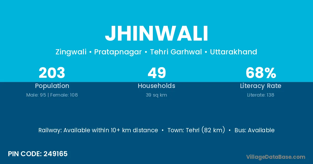 Tehri (82 km) is the nearest town to Jhinwali village for major economic activities and is located approximately 82 km away.