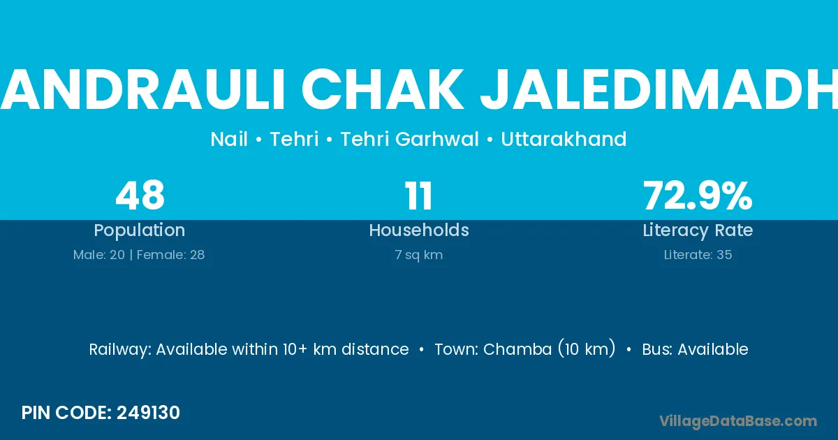 Chamba (10 km) is the nearest town to Bandrauli Chak Jaledimadhe village for major economic activities and is located approximately 10 km away.