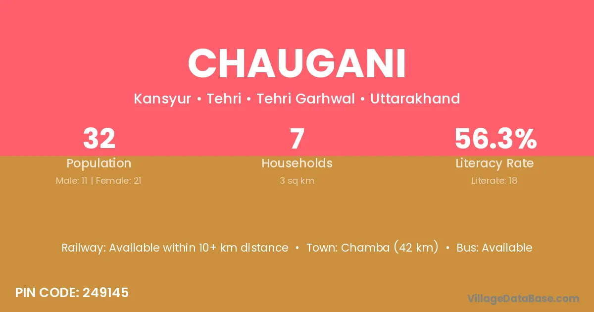 Chamba (42 km) is the nearest town to Chaugani village for major economic activities and is located approximately 42 km away.