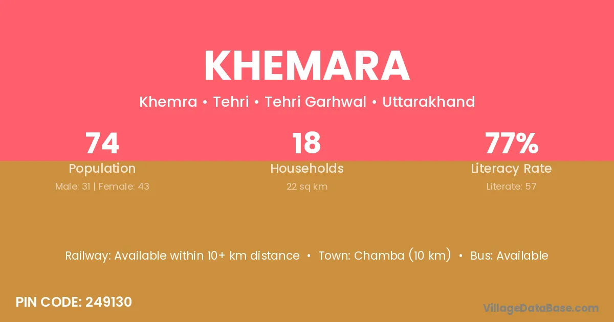 Chamba (10 km) is the nearest town to Khemara village for major economic activities and is located approximately 10 km away.