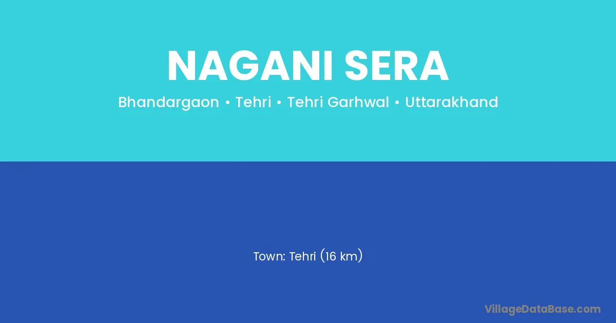 Tehri (16 km) is the nearest town to Nagani Sera village for major economic activities and is located approximately 16 km away.