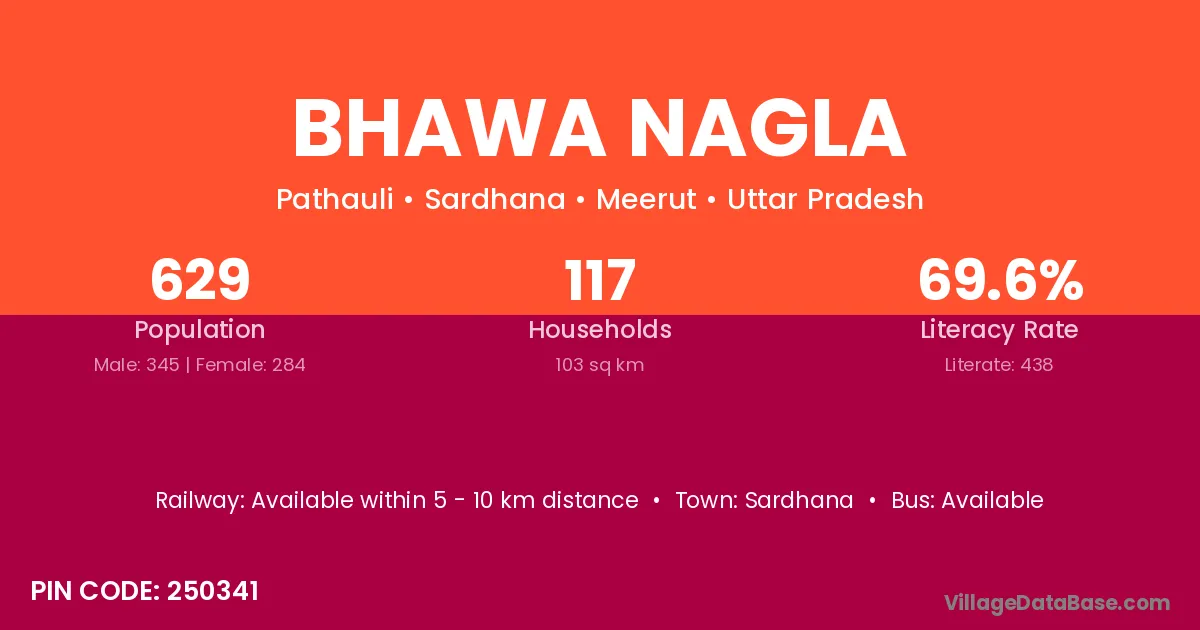 The literacy rate of Bhawa Nagla village is 30.42%. Male literacy stands at 33.28% and female literacy at 27.30%.
