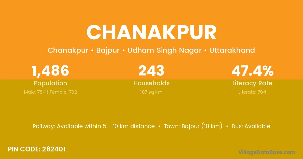 Bajpur (10 km) is the nearest town to Chanakpur village for major economic activities and is located approximately 10 km away.