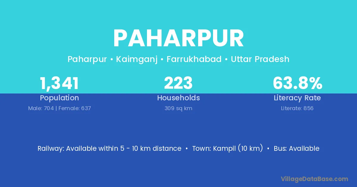 Paharpur village has a total population of 1,336 people, of which 689 are males and 647 are females.
