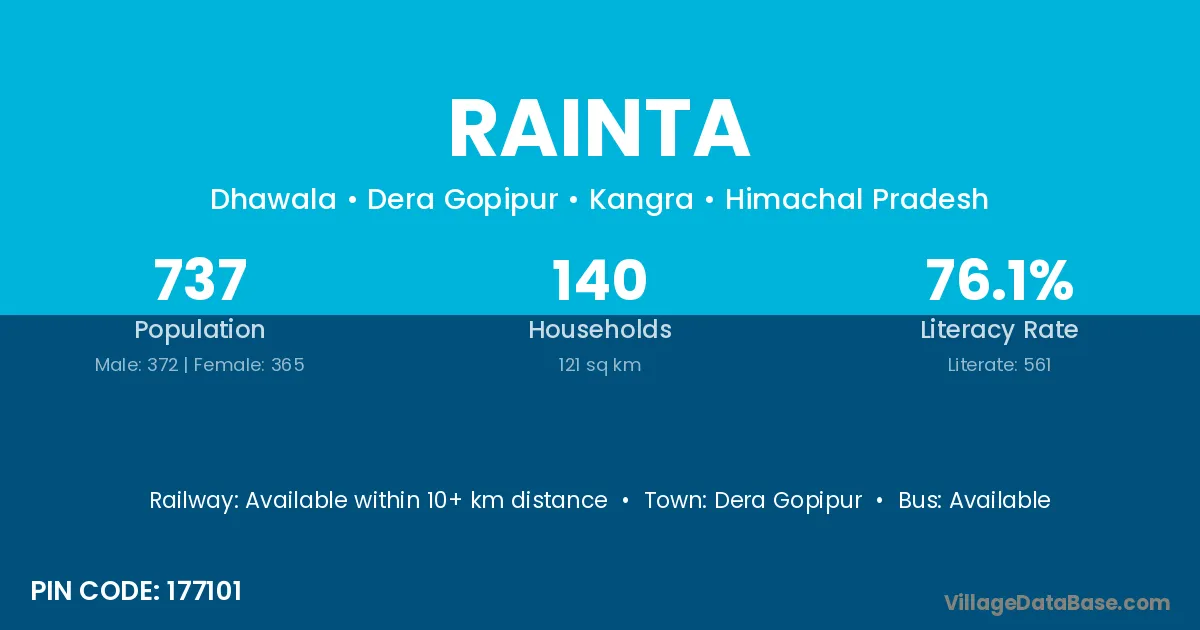 Bajpur (12 km) is the nearest town to Rainta village for major economic activities and is located approximately 12 km away.