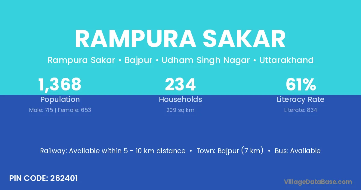 Rampura Sakar village has a total population of 1,368 people, of which 715 are males and 653 are females.