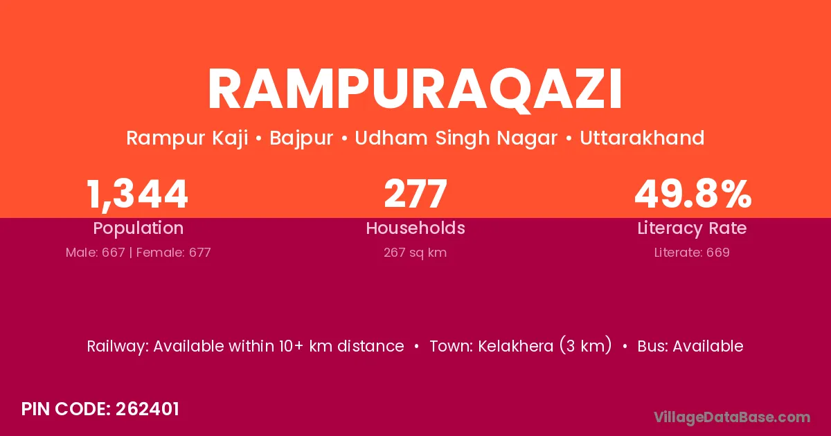 Rampuraqazi village has a total population of 1,344 people, of which 667 are males and 677 are females.