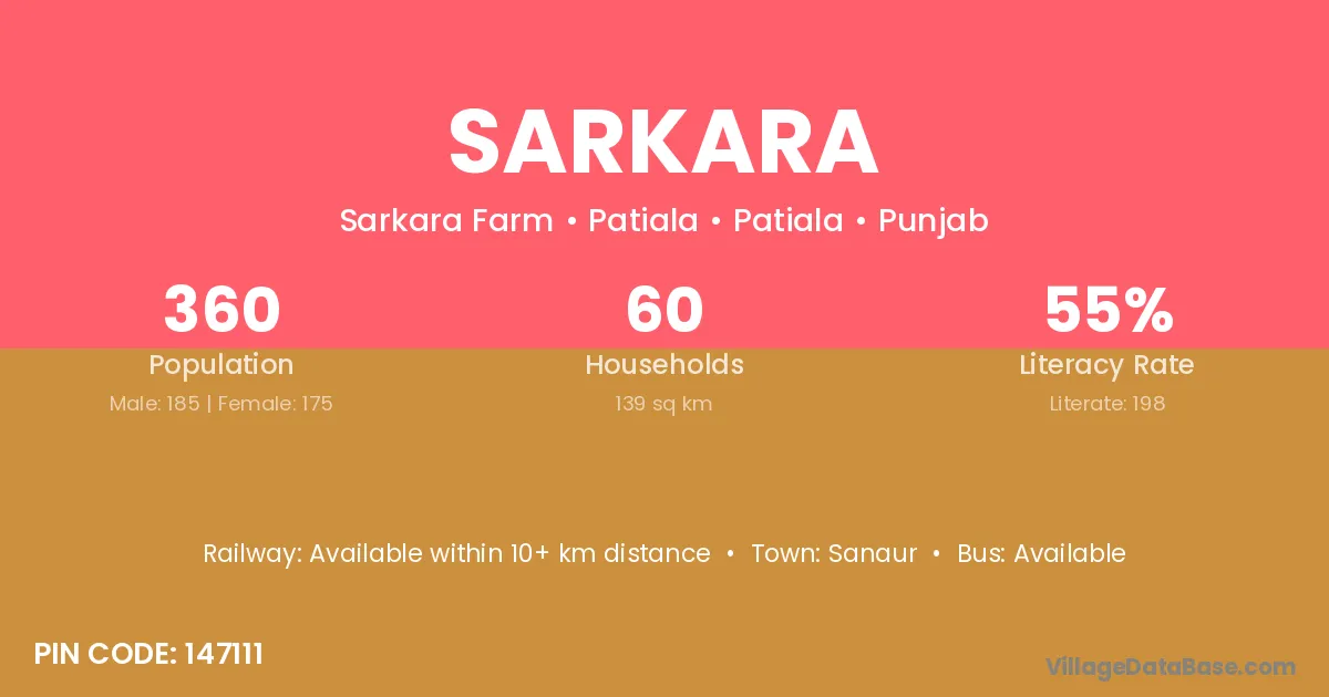 Sarkara village has a total population of 1,006 people, of which 531 are males and 475 are females.