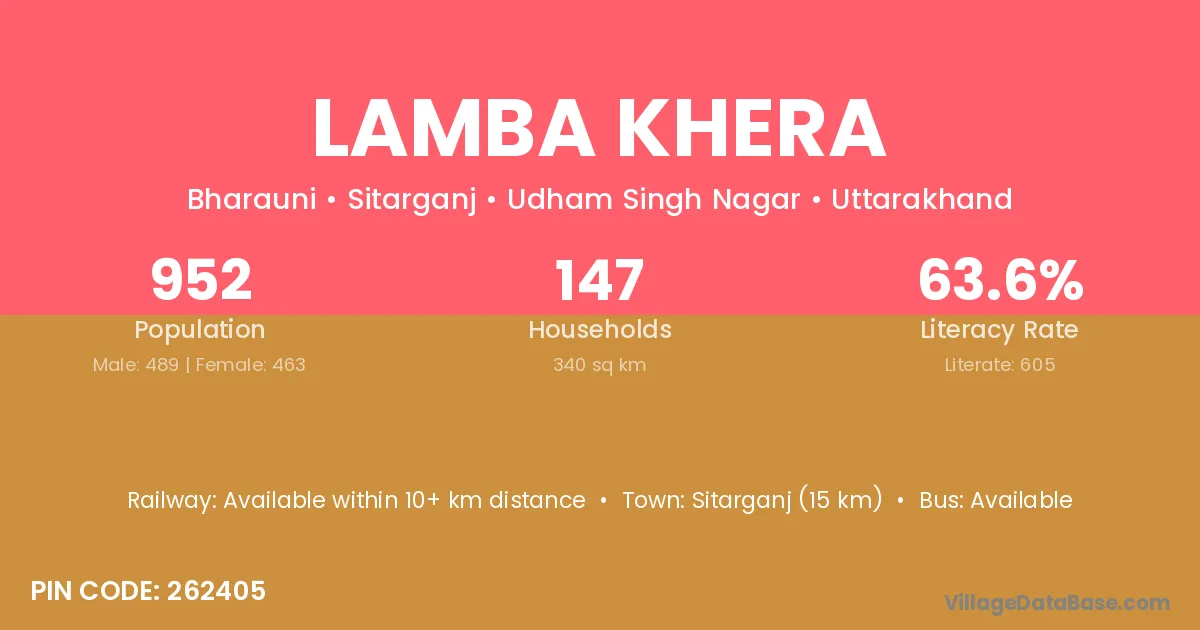 According to Census 2011 information, the village code of Lamba Khera village is 263152.
