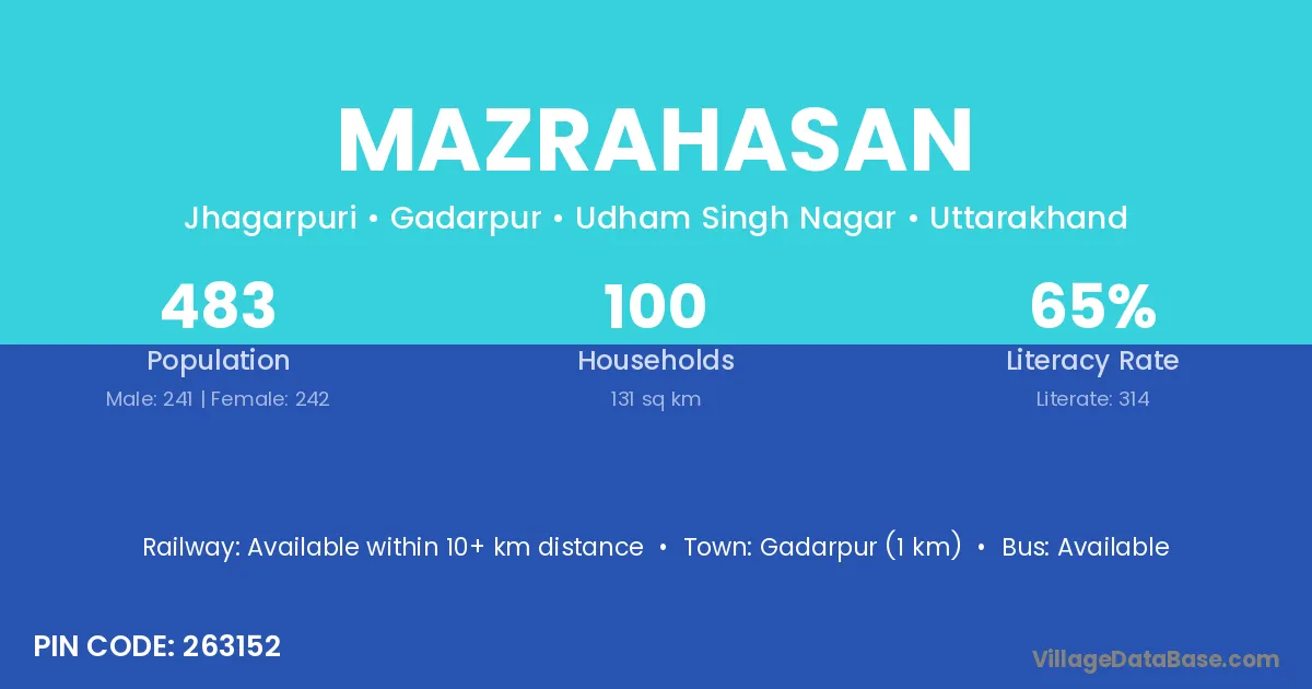 Gadarpur (1 km) is the nearest town to Mazrahasan village for major economic activities and is located approximately 1 km away.