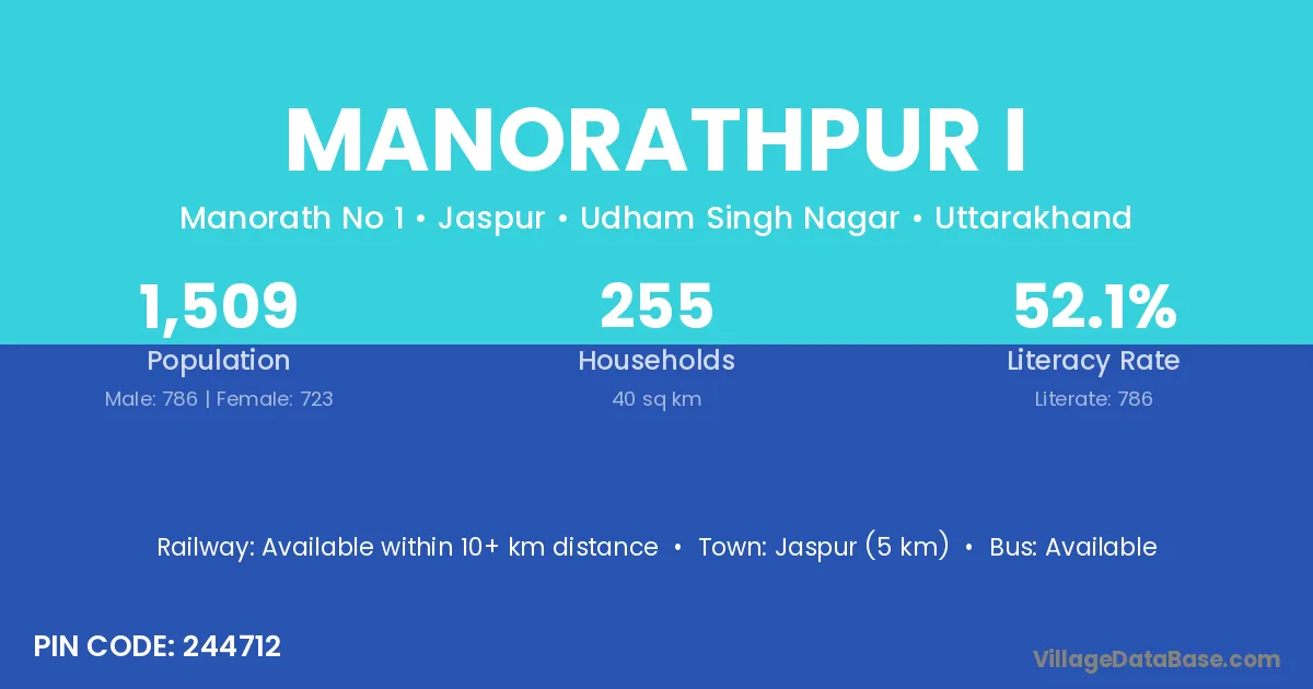 Manorathpur I village has a total population of 1,509 people, of which 786 are males and 723 are females.