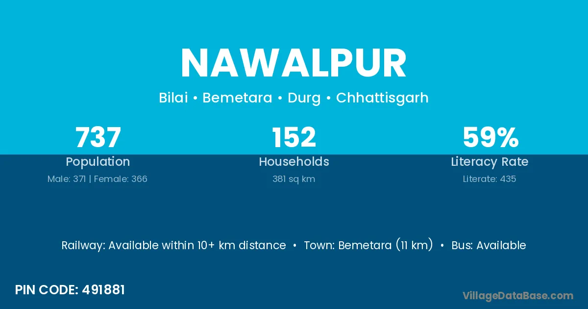 Jaspur (20 km) is the nearest town to Nawalpur village for major economic activities and is located approximately 20 km away.
