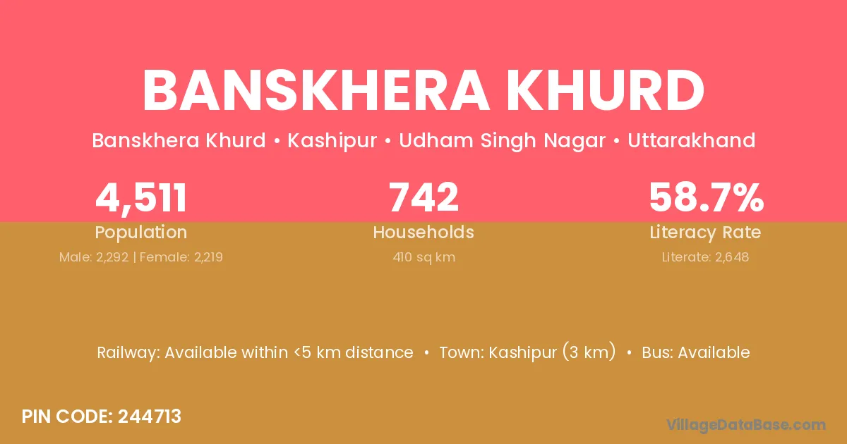 Banskhera Khurd village has a total population of 4,511 people, of which 2,292 are males and 2,219 are females.