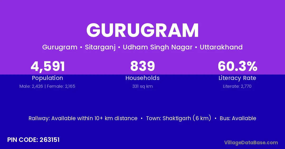 According to Census 2011 information, the village code of Gurugram village is 263151.