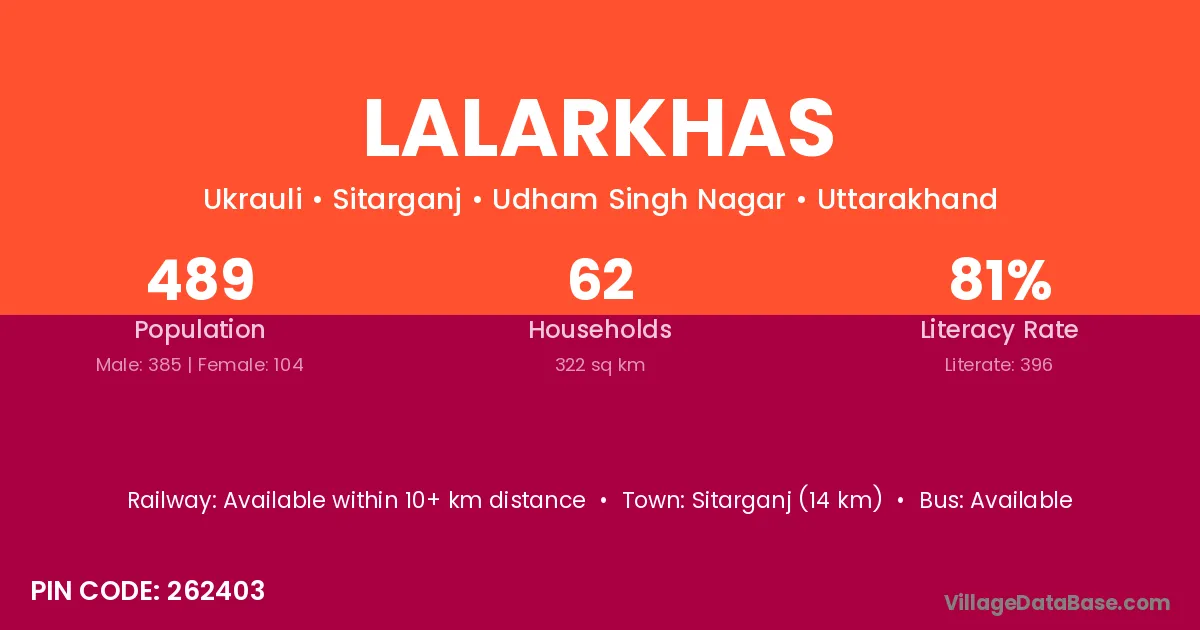 According to Census 2011 information, the village code of Lalarkhas village is 262403.
