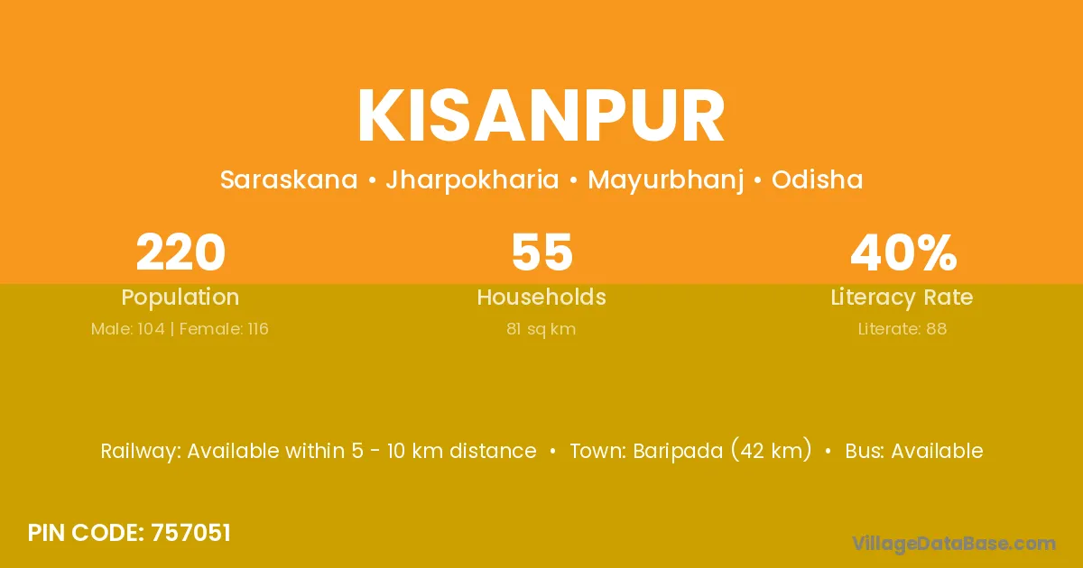 Kisanpur village has a total population of 955 people, of which 480 are males and 475 are females.