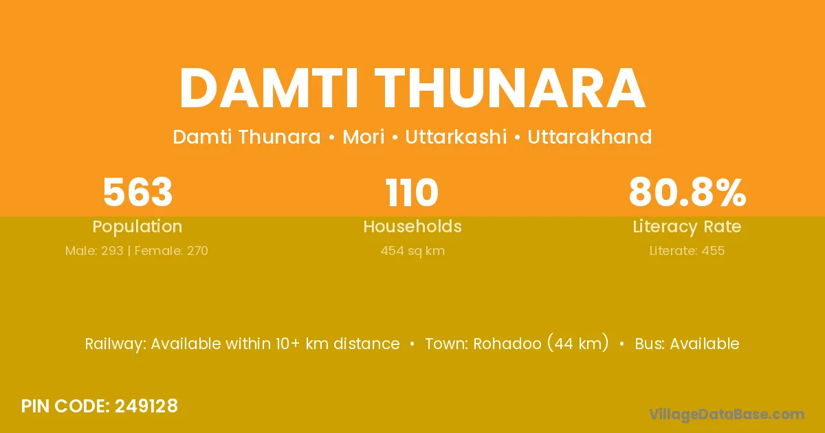 Damti Thunara village has a total population of 563 people, of which 293 are males and 270 are females.