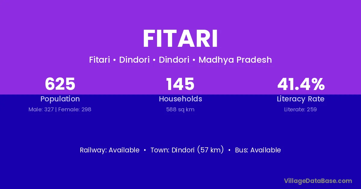 The literacy rate of Fitari village is 43.48%. Male literacy stands at 56.98% and female literacy at 30.04%.