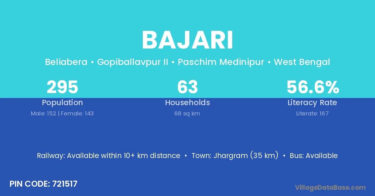 Bajari village has a total population of 295 people, of which 161 are males and 134 are females.
