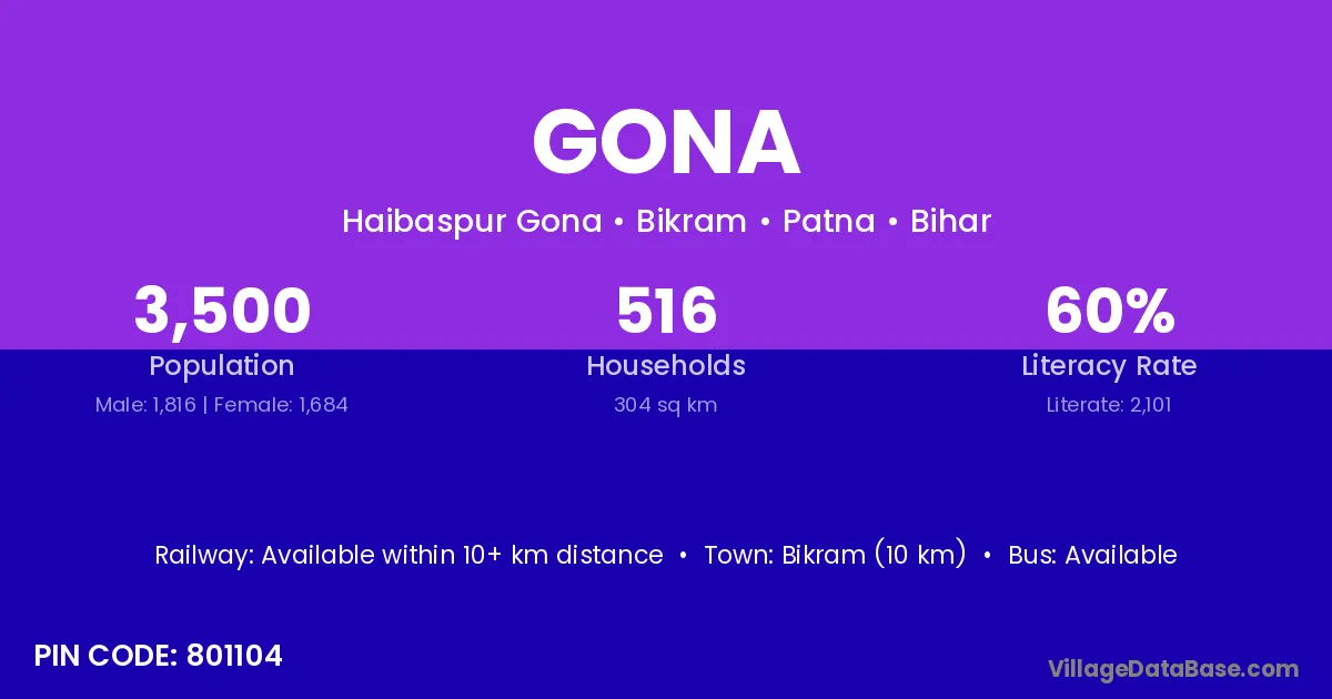 According to Census 2011 information, the village code of Gona village is 249141.