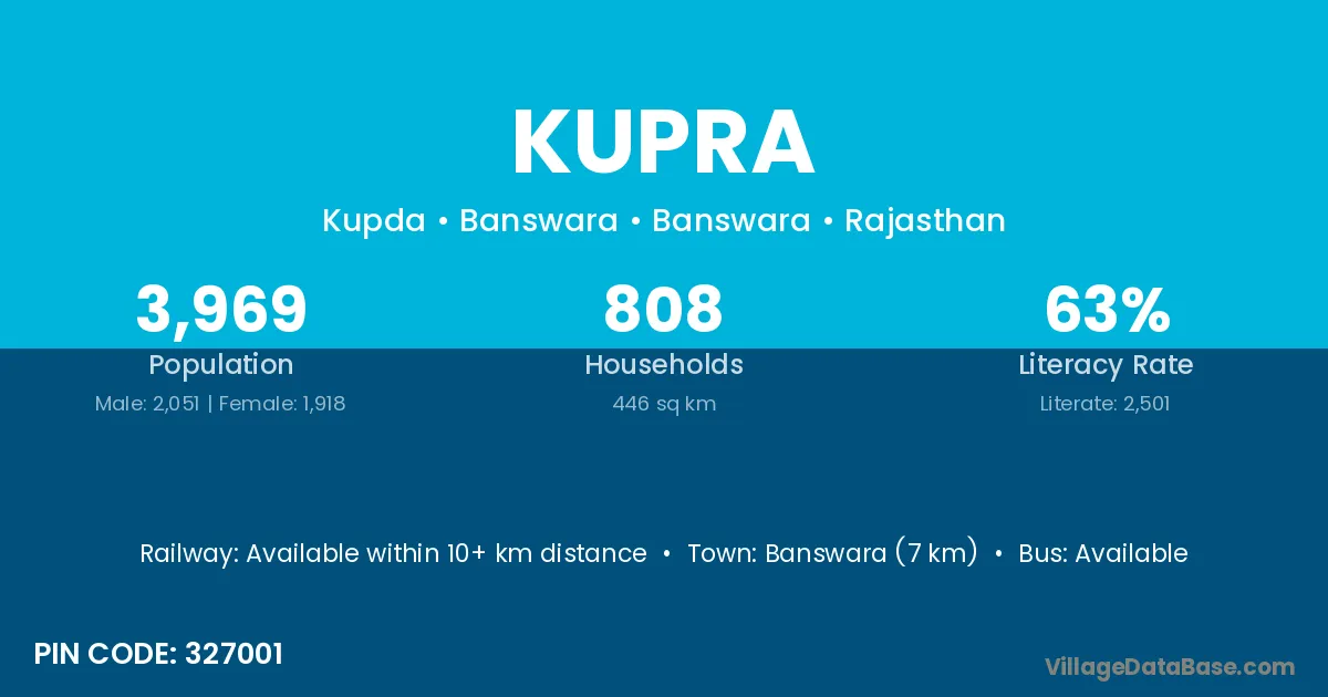 Barkot (34 km) is the nearest town to Kupra village for major economic activities and is located approximately 34 km away.