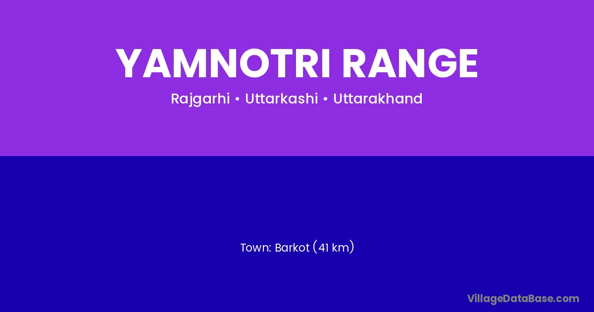 Barkot (41 km) is the nearest town to Yamnotri Range village for major economic activities and is located approximately 41 km away.