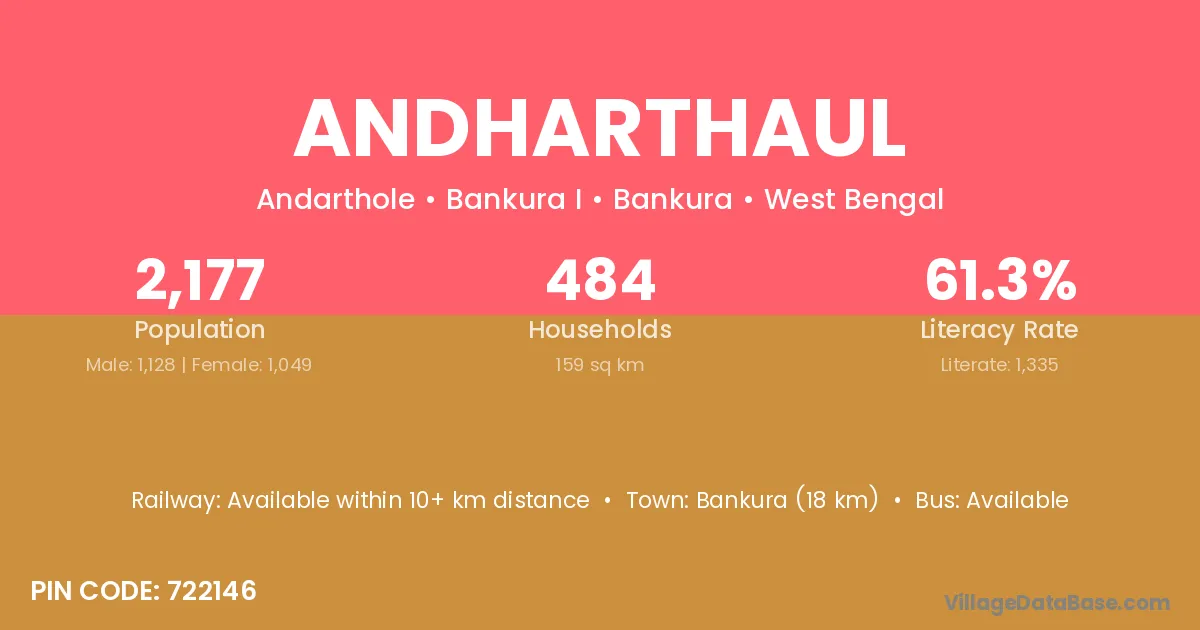 Bankura (18 km) is the nearest town to Andharthaul village for major economic activities and is located approximately 18 km away.