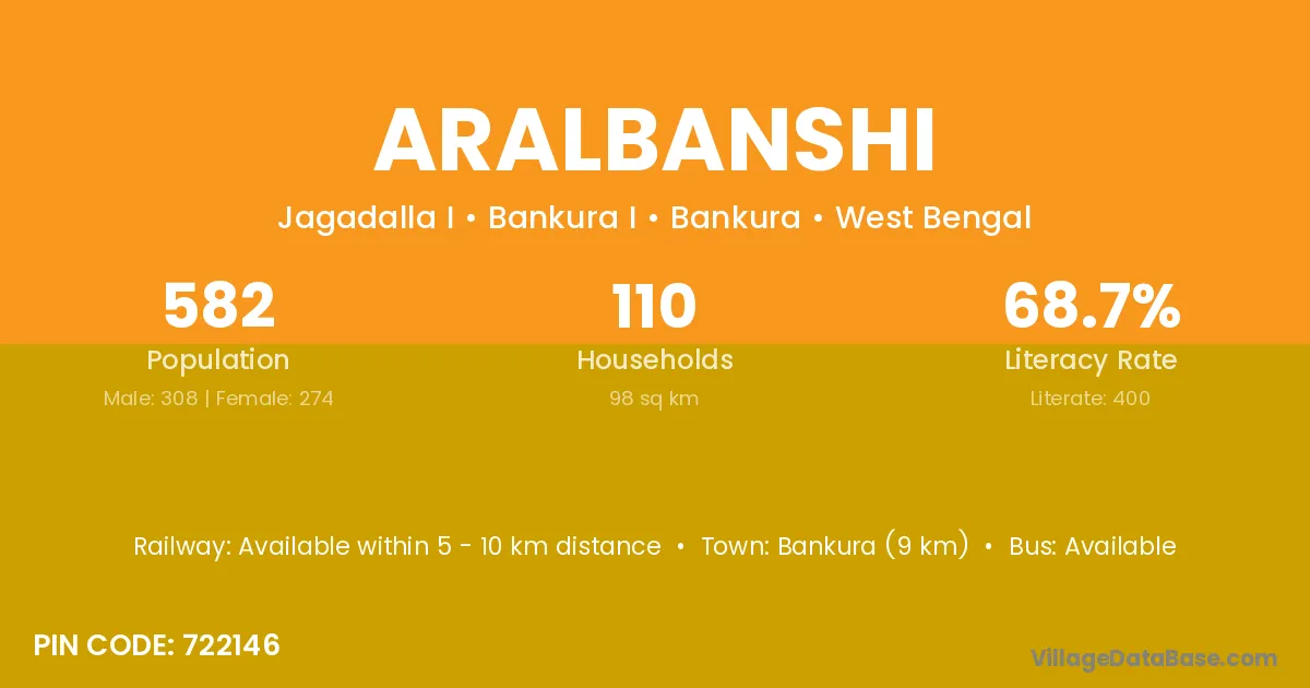 Bankura (9 km) is the nearest town to Aralbanshi village for major economic activities and is located approximately 9 km away.