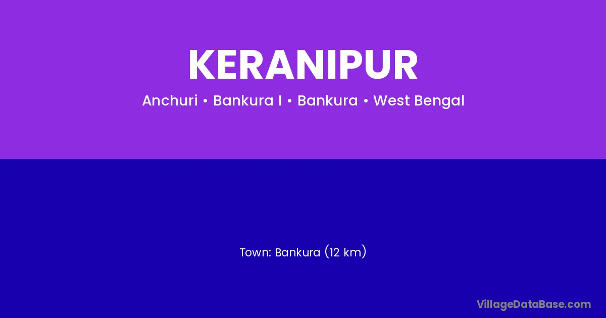 Bankura (12 km) is the nearest town to Keranipur village for major economic activities and is located approximately 12 km away.