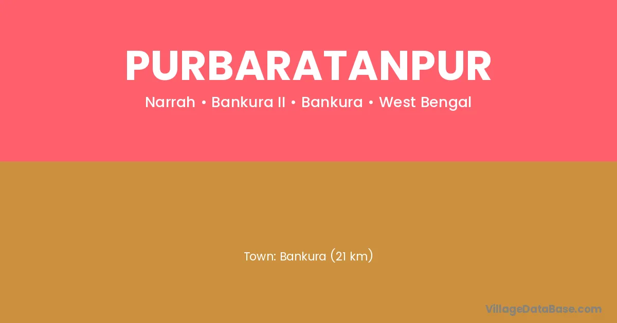 Bankura (21 km) is the nearest town to Purbaratanpur village for major economic activities and is located approximately 21 km away.